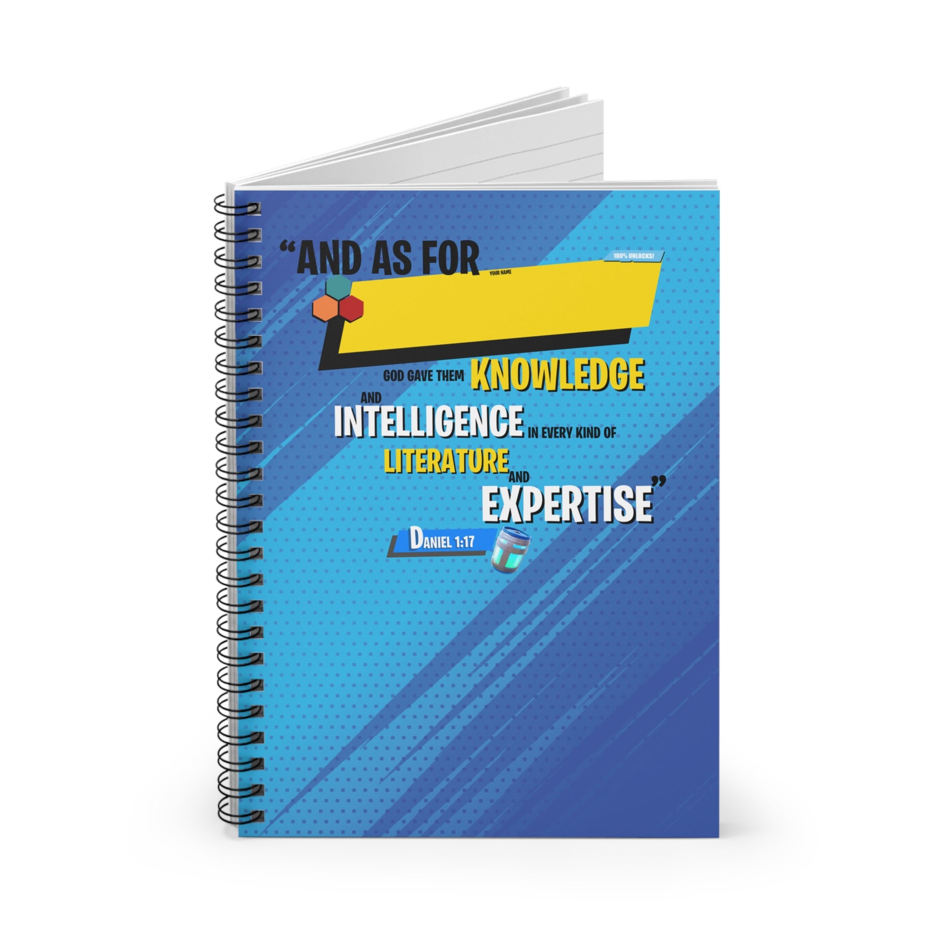 Custom made journal or notebook, write your student's name in the yellow box! Inspired by Daniel and his four friends whom God blessed and annointed them to help direct influence a nation.
